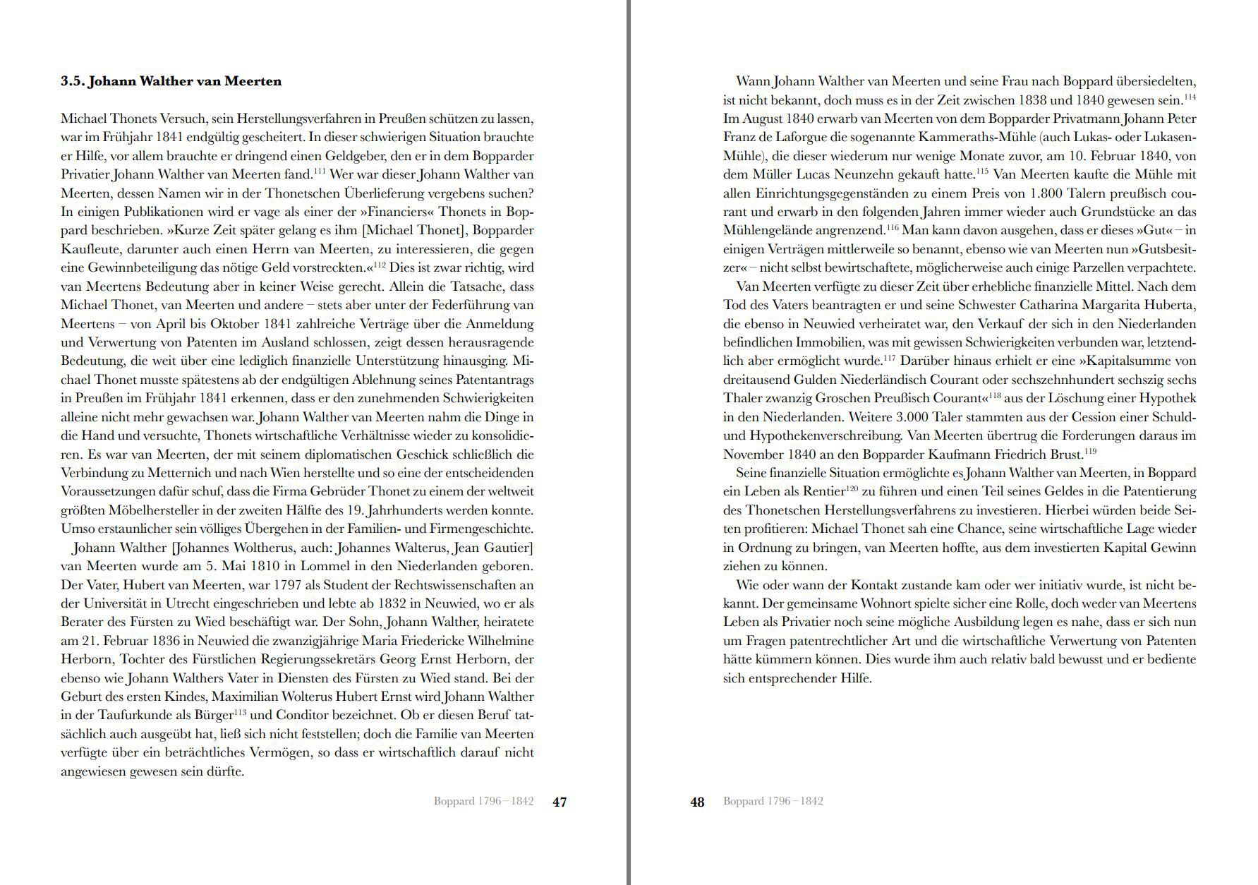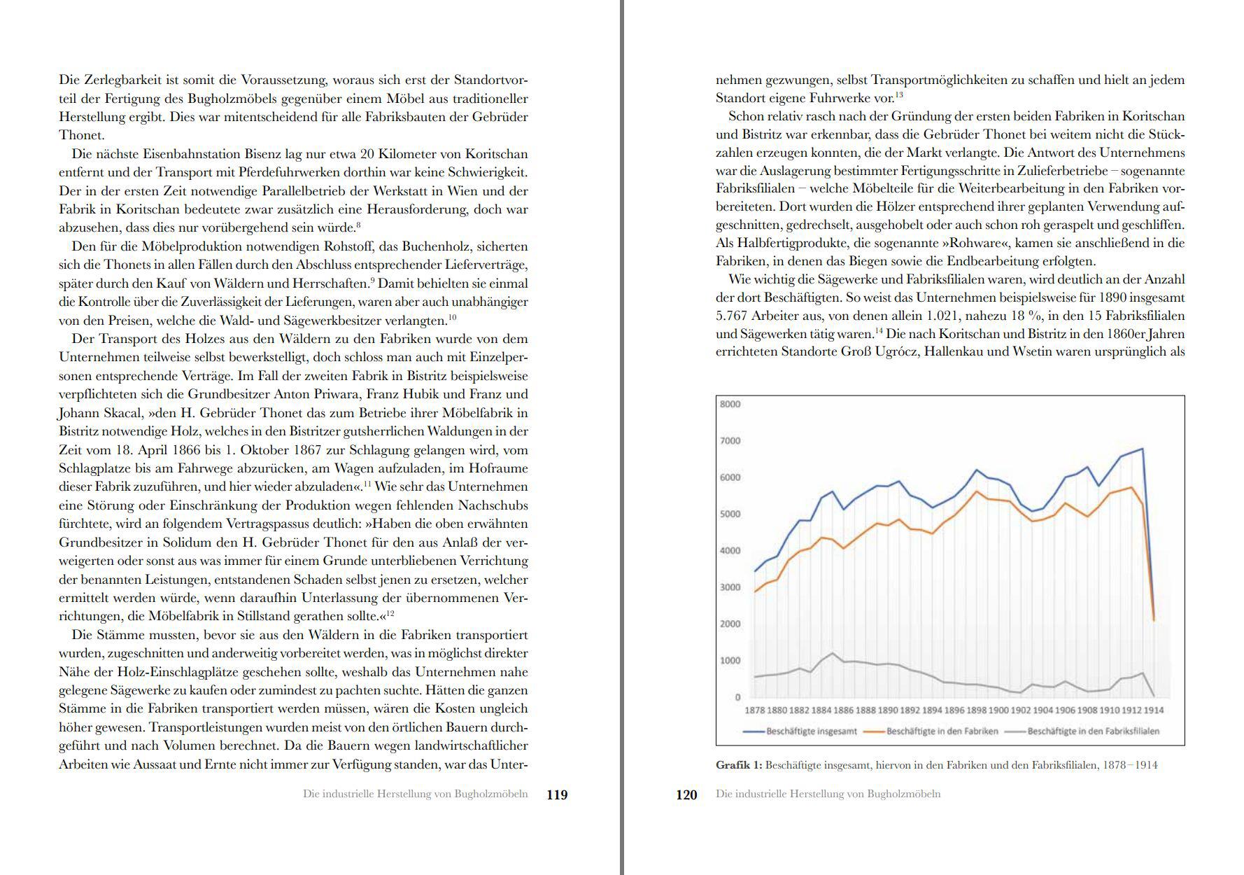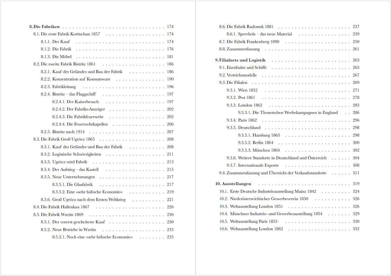 Der Name Thonet steht für eine der erfolgreichsten Marken der Möbelgeschichte, begründet von dem aus Boppard stammenden Tischler Michael Thonet (1796 – 1871). Besonders der von der Firma 1859 vorgestellte „Wiener Kaffeehausstuhl“ zählt zu den zeitlosen Designikonen. In auffälligem Gegensatz zu der zahlreichen Literatur über die Möbel des Unternehmens blieb die Geschichte des Herstellers bislang im Dunkeln, der Kenntnisstand ging nicht über ein ausschmückendes Narrativ hinaus. Forschungen über das Unternehmen waren lange Zeit aufgrund der Quellenlage nicht möglich, da sich die wichtigsten Überlieferungen in tschechischen und slowakischen Archiven befinden und erst mit deren Öffnung zugänglich wurden. Mit Hilfe dieser Quellen werden die Gebrüder Thonet erstmals unter wirtschafts-, technik-, kultur-, und sozialgeschichtlichen Fragestellungen betrachtet. Das Unternehmen nutzte die Möglichkeiten, welche eine neue Zeit bot, in geradezu genialer Weise für sich und seine Möbel. Der Niedergang kam mit dem 1. Weltkrieg. Doch waren es nicht allein die Folgen des Krieges, sondern zunehmend auch familiäre Auseinandersetzungen, welche das Ende der Firma nach nur drei Generationen einläuteten. Oder wie es in den Buddenbrooks so treffend heißt: “Der Vater erstellt’s, der Sohn erhält’s, dem Enkel zerfällt’s.”