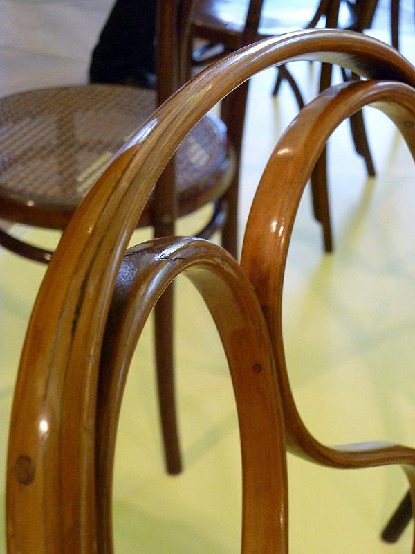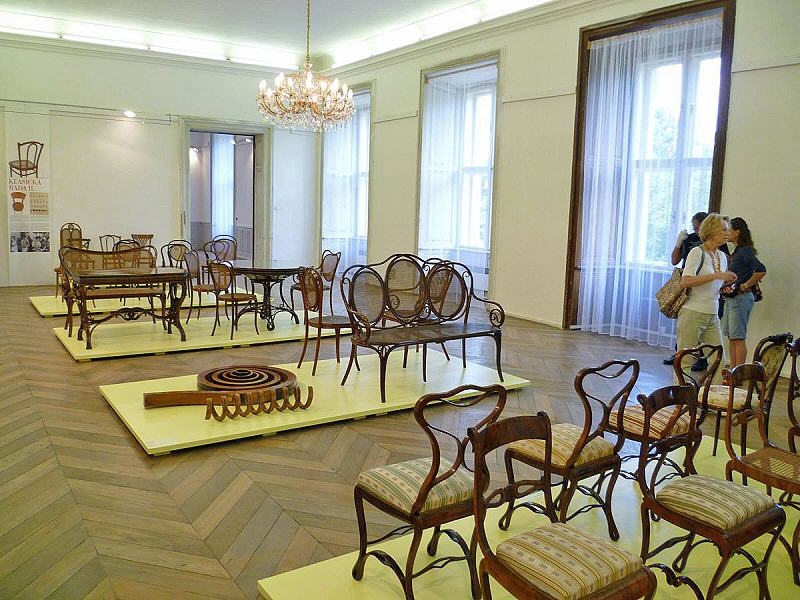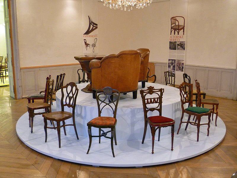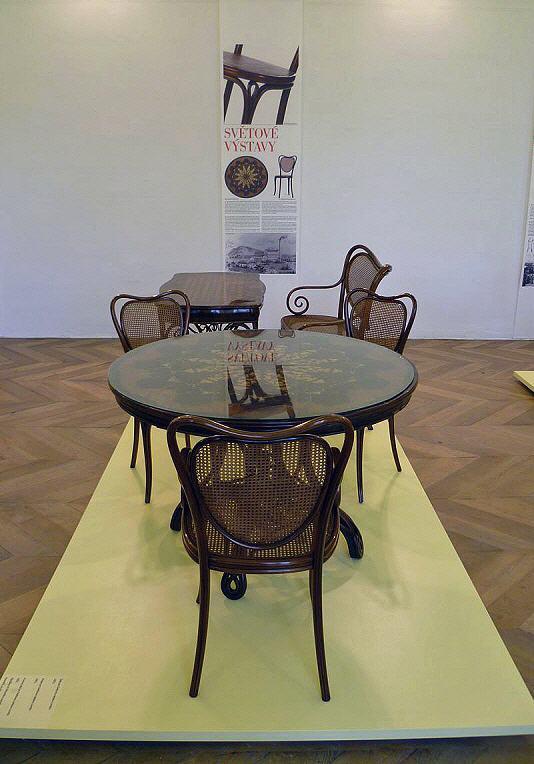 Eine Gruppe von Thonetologen konnte sich unter der fachkundigen Leitung des Kurators dieser Ausstellung, Jiri Uhlir, einen Überblick verschaffen. Bei einer eigens organisierten Werksbesichtigung der Firma TON erhielt man einen Einblick in die heutige Produktion, wobei das Biegen grundsätzlich auf die gleiche Art und Weise wie zur Zeit Michael Thonets vonstatten geht: Dreidimensionale Bauteile können nur händisch gebogen werden; bei zweidimensionalen kommt Maschinenkraft zum Einsatz.